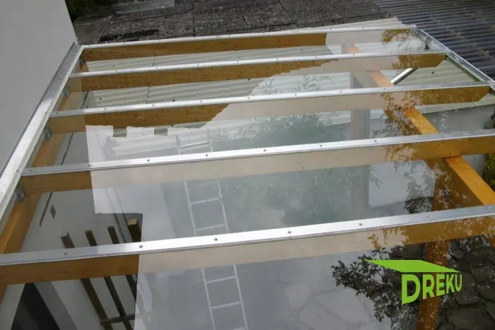 Leimholz Terrassendach mit 8 mm VSG-Glas