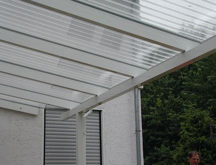 Terrassendach aus Aluminium mit 16 mm Stegplatten: