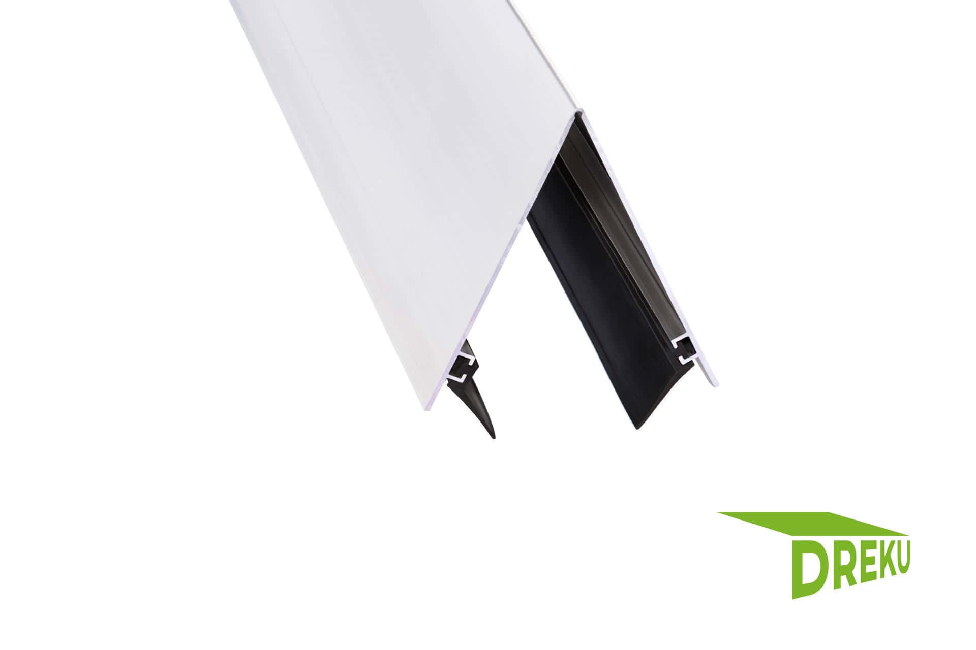 Aluminium Firsthaube aus Aluminium mit Gummidichtung beidseitig. Neigung ist durch Materialverengung frei einstellbar ! Nur ganze Stangen lieferbar. Zuschnitte sind kostenlos. Geben Sie dies unter „Zuschnitt“ an.