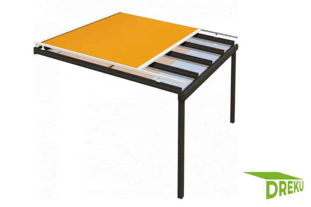 Eine Aufdach-Markise wird über deinem vorhandenen Glasdach oder deiner Terrassenüberdachung montiert. Dadurch bleibt die untere Durchgangshöhe voll erhalten und die Markisenmechanik ist auch bei schlechtem Wetter geschützt. Die Ancona Aufdach-Markise kommt mit einer robusten Dachabdeckung, die das Tuch und die Technik vor Regen, Schmutz und Umwelteinflüssen schützt.