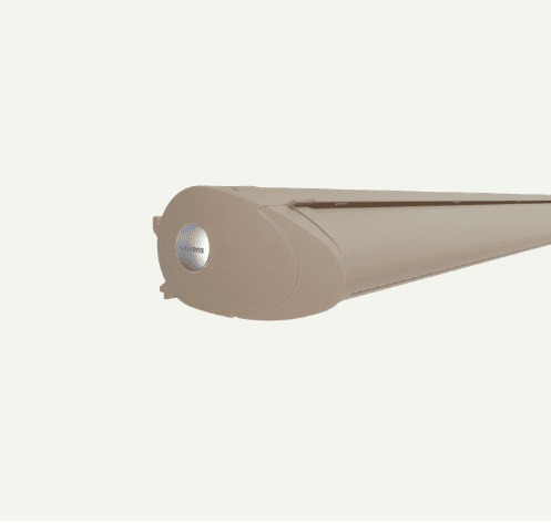 Bei eingefahrener Markise schließt das Ausfallprofil die Kassette vollständig.