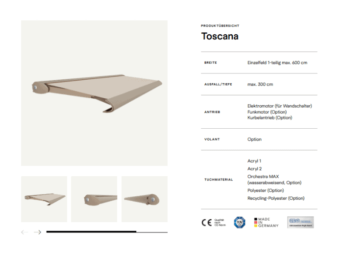 Konfigurieren Sie jetzt Ihre Toscana Grande Markise und schaffen Sie