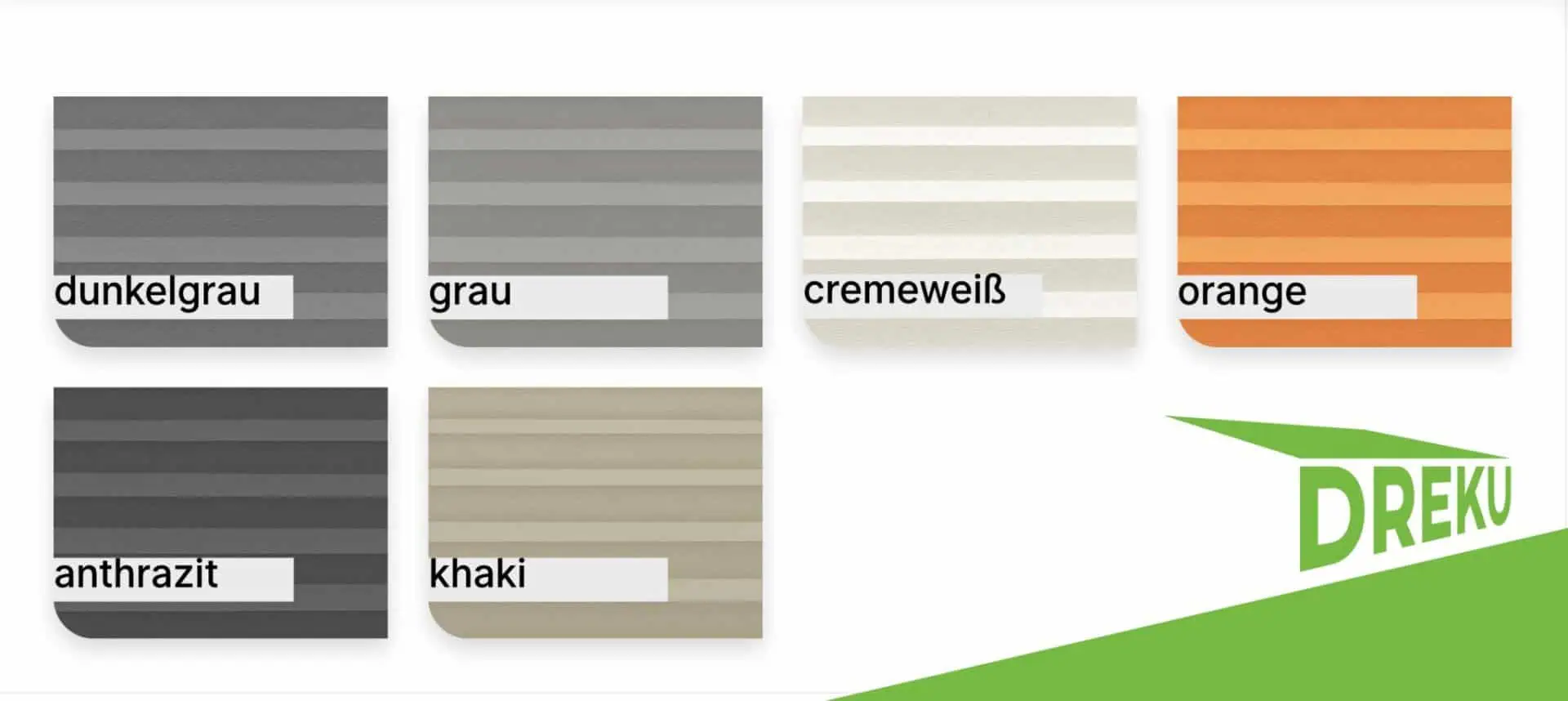 - Farbe Ihres Plissees: anthrazit, cremeweiß, dunkelgrau, grau, khaki, orange
