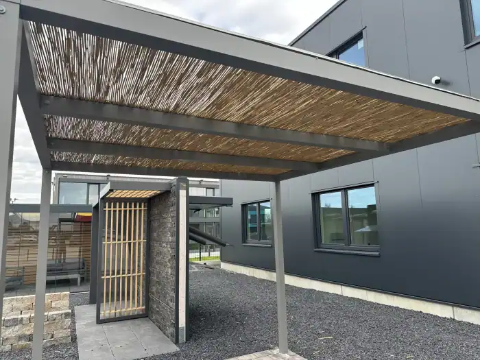 Hochwertige Materialien und stabile Rahmenkonstruktionen sorgen für eine langlebige Überdachung, die Wind, Wetter und UV-Strahlung standhält.
