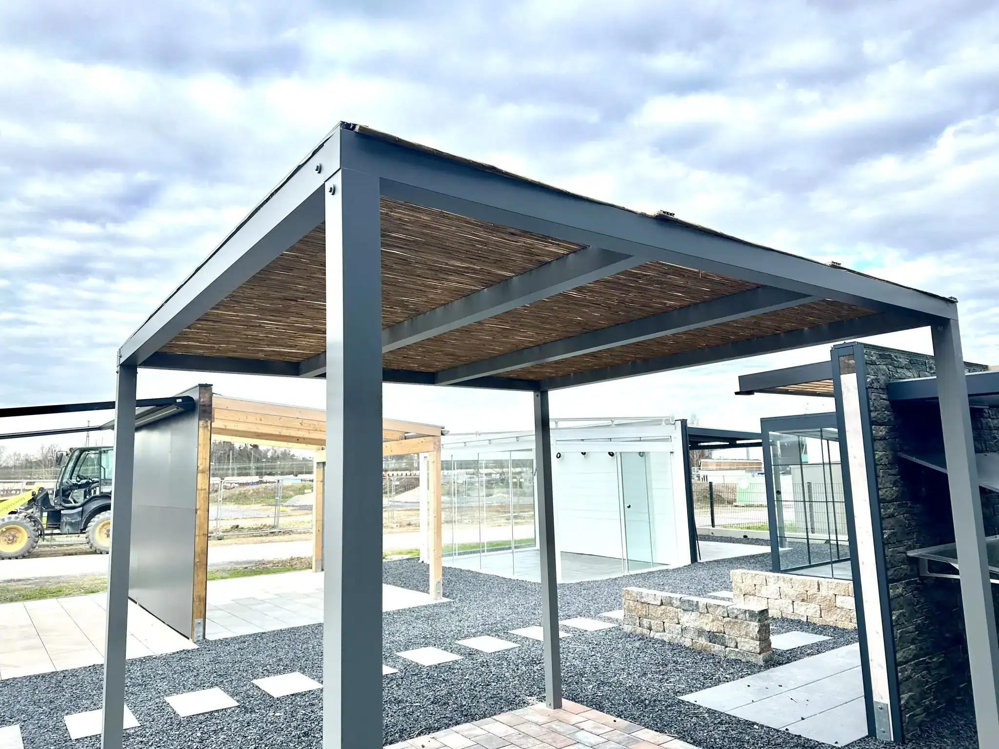 Hochwertige Materialien und stabile Rahmenkonstruktionen sorgen für eine langlebige Überdachung, die Wind, Wetter und UV-Strahlung standhält.