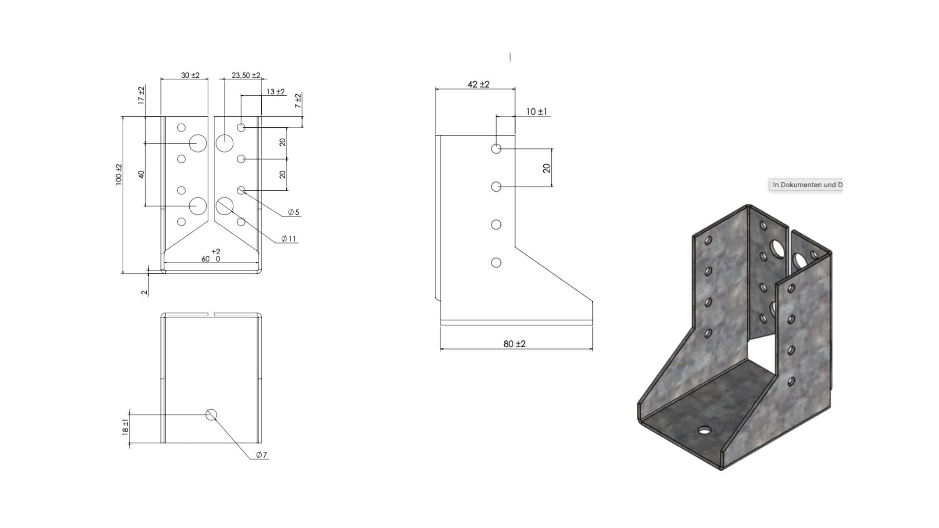 - Bohrungen standardisiert für gängige Schrauben und Bolzen