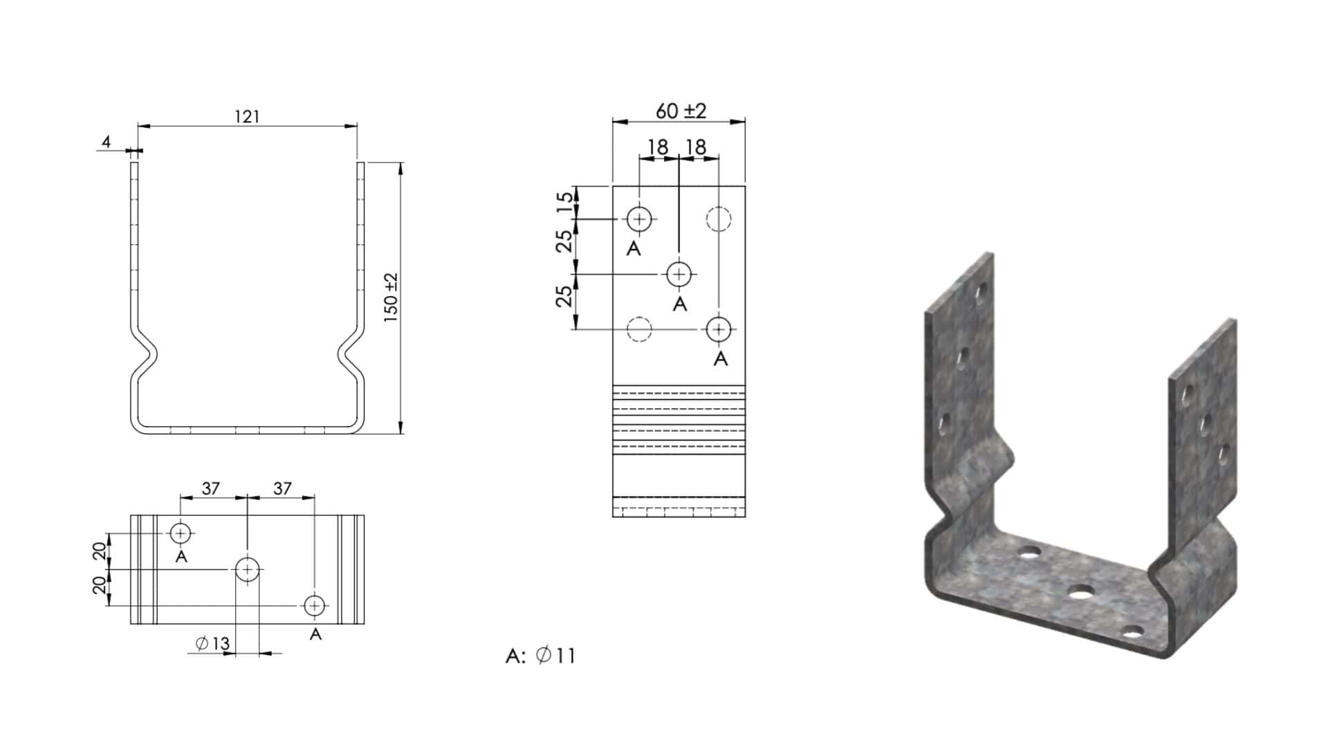 • Breite Innen: 121 mm | Breite Anker: 60 mm | Länge: 150 mm
