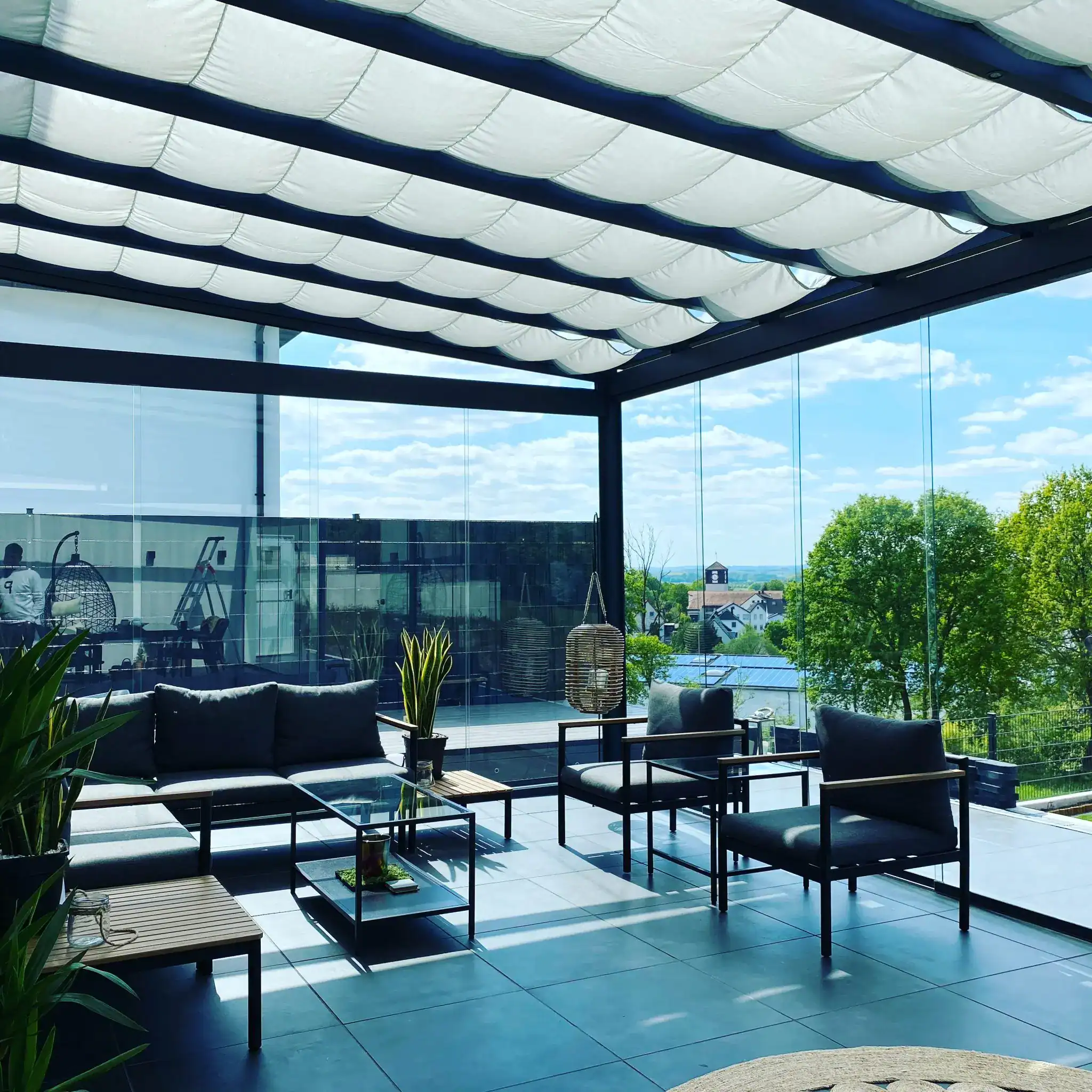 - Komplettlieferung: Terrassendach + Seitenwände auf Basis der bestätigten Planung