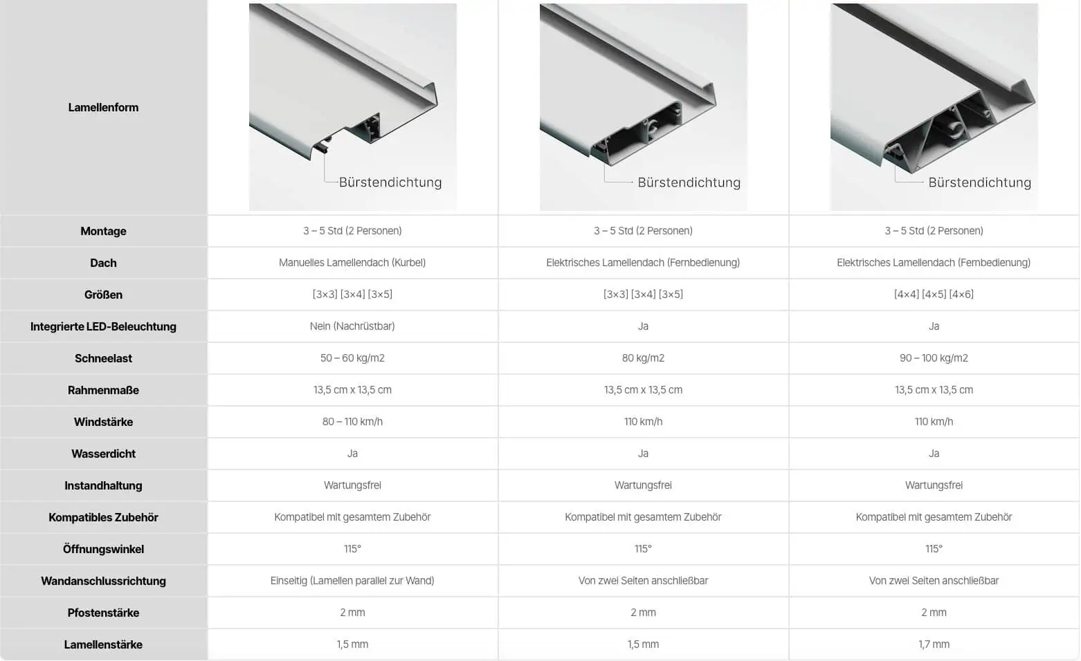 Dank der stabilen pulverbeschichteten Aluminiumkonstruktion ist die Pergola absolut wetterfest, langlebig und pflegeleicht. Ein cleveres Wasserableitungssystem leitet Regen zuverlässig über innenliegende Rinnen und Pfosten ab. Mit einer Schneelast von bis zu 60 kg/m² und einer Windbeständigkeit bis 110 km/h bietet die DREKU Pergola Sicherheit und Stabilität – auch bei anspruchsvollen Wetterbedingungen.