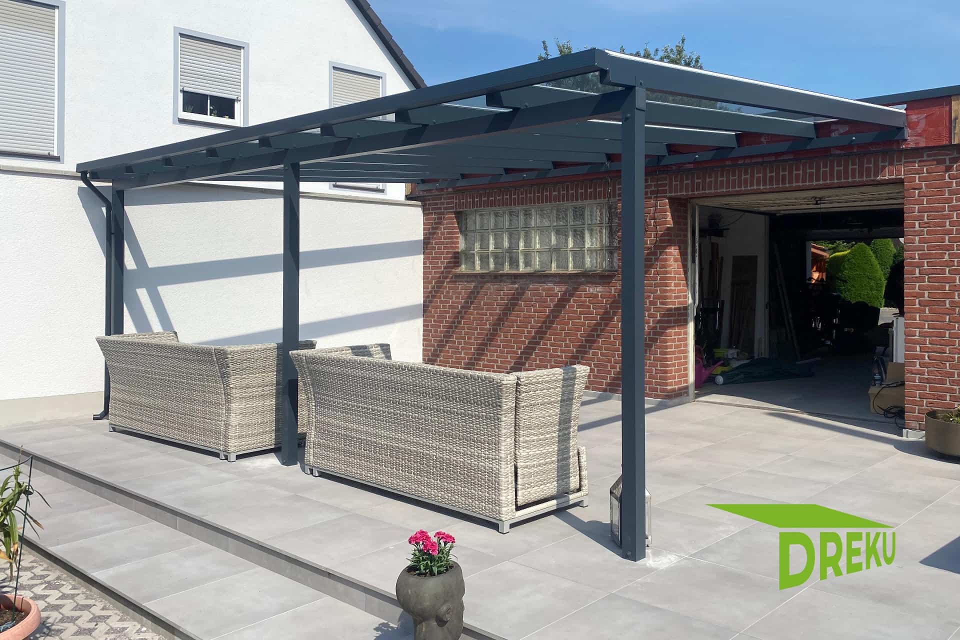 Mit dem Terrassendach aus Aluminium von DREKU schaffen Sie einen stilvollen und geschützten Außenbereich, der Ihre Terrasse in eine Wohlfühloase verwandelt. Genießen Sie die Freiheit, Ihre Terrasse bei jedem Wetter zu nutzen – mit Qualität und Design, die überzeugen.