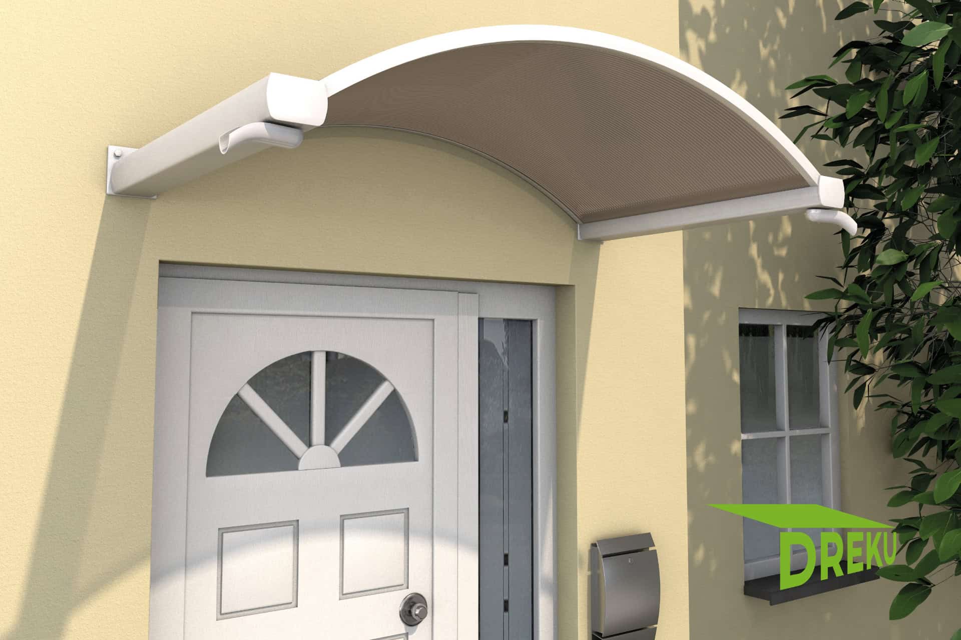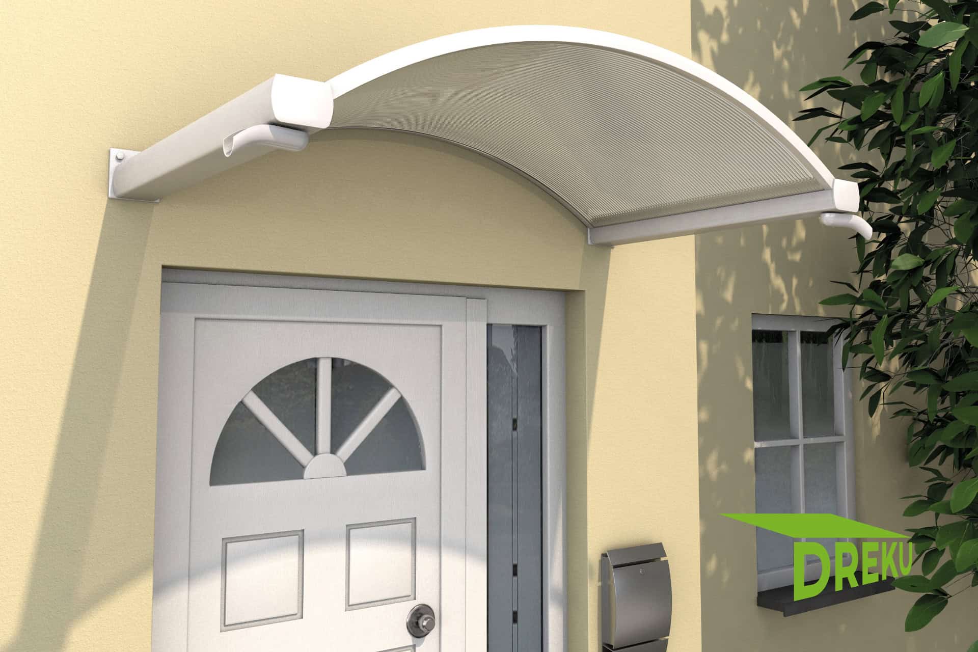 Setzen Sie eigene Akzente in Ihrem Eingangsbereich beispielsweise mit dem weißen Bogenvordach NO. Das elegante Dach besteht aus einem stabilen Rahmen aus pulverbeschichtetem Aluminium und einer robusten Polycarbonat Stegplatte als Abdeckung. Beidseitige angebrachte Regenrinnen runden Form und Funktionalität ab.