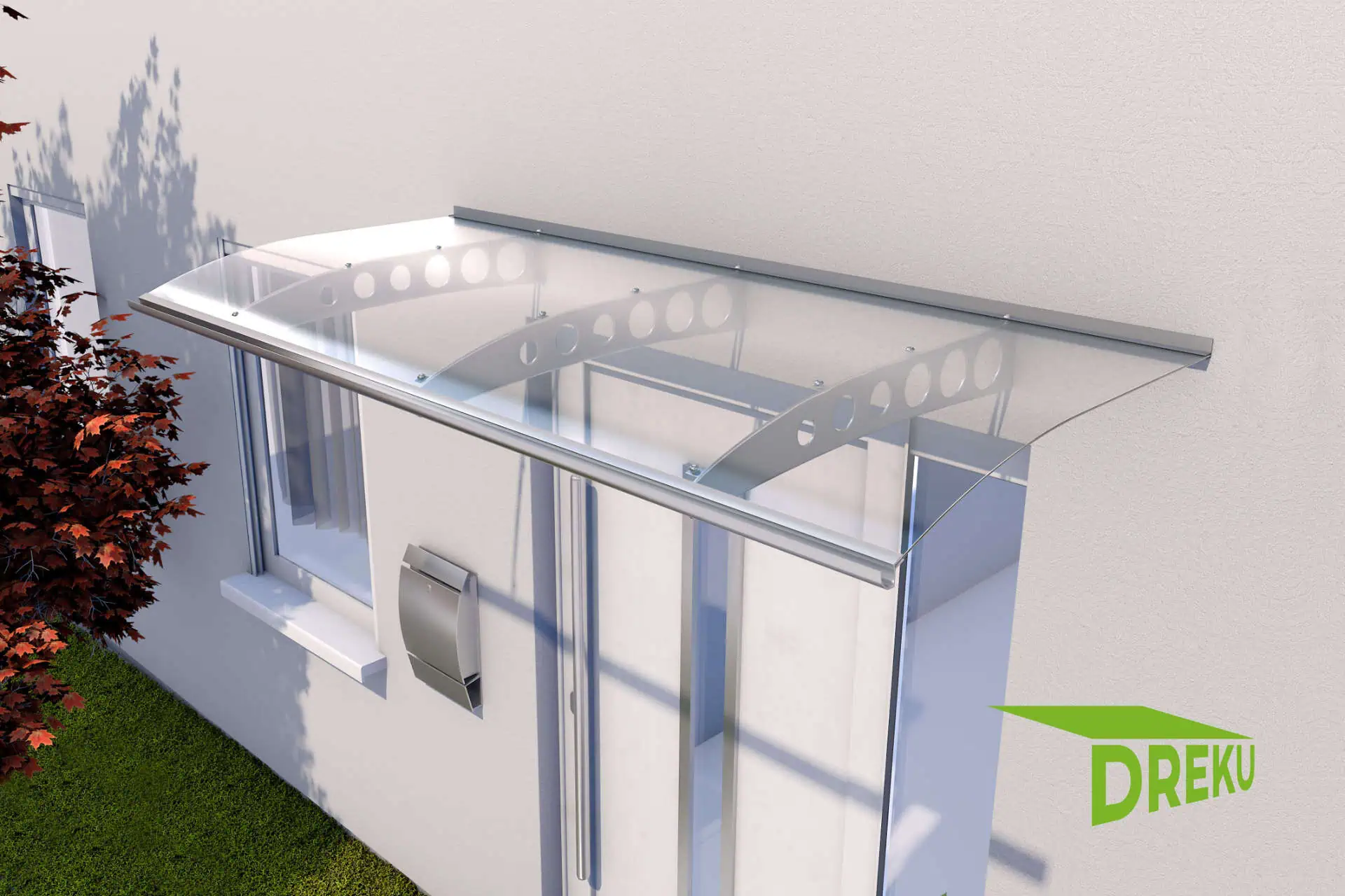 Das Pultvordach Braunschweig ist ein sehr hochwertiges leicht gebogenes Vordach in vier verschiedenen Breiten.