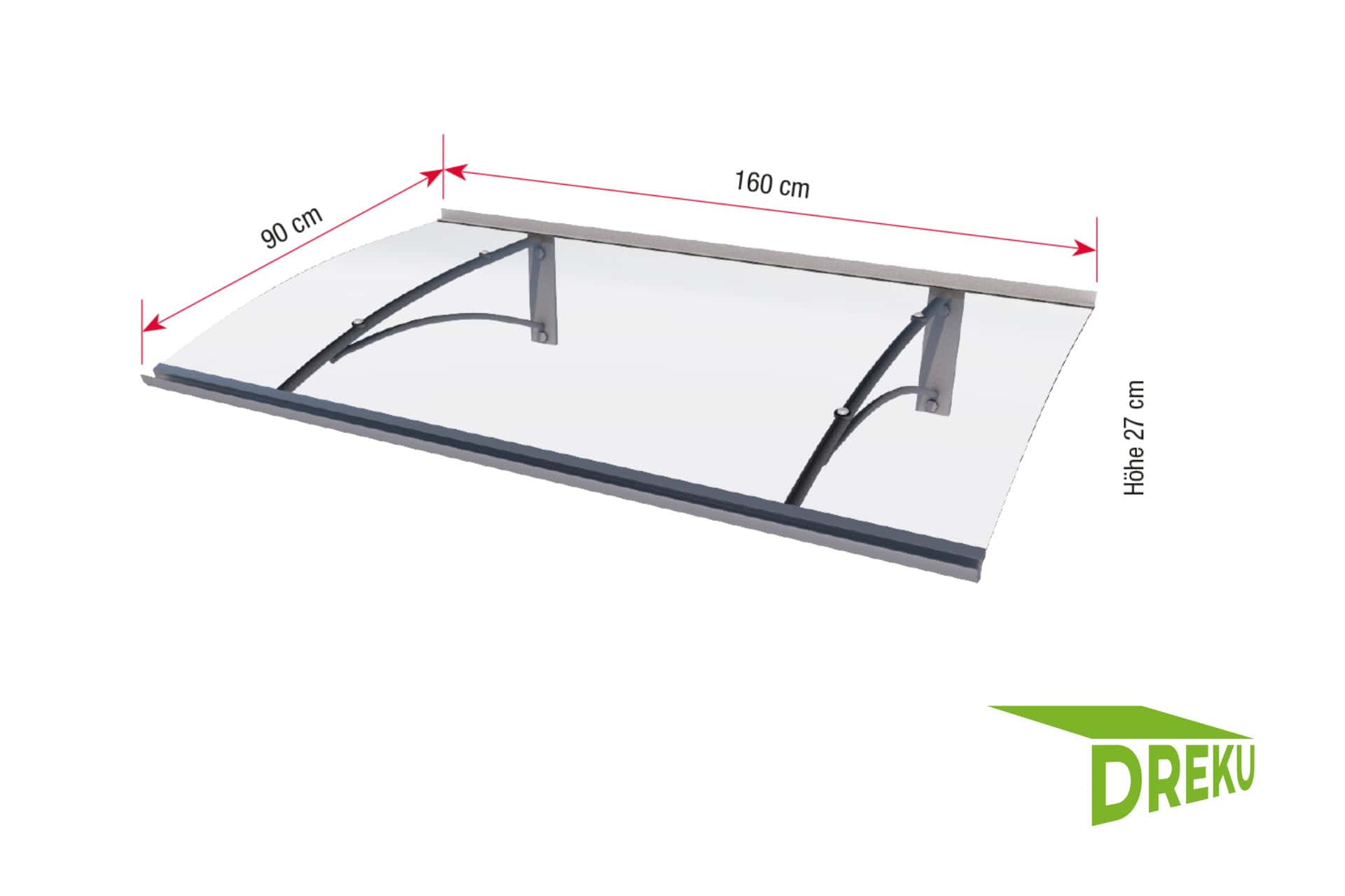 • Material: Träger, Regenrinne und Wandanschluss aus pulverbeschichtetem Aluminium