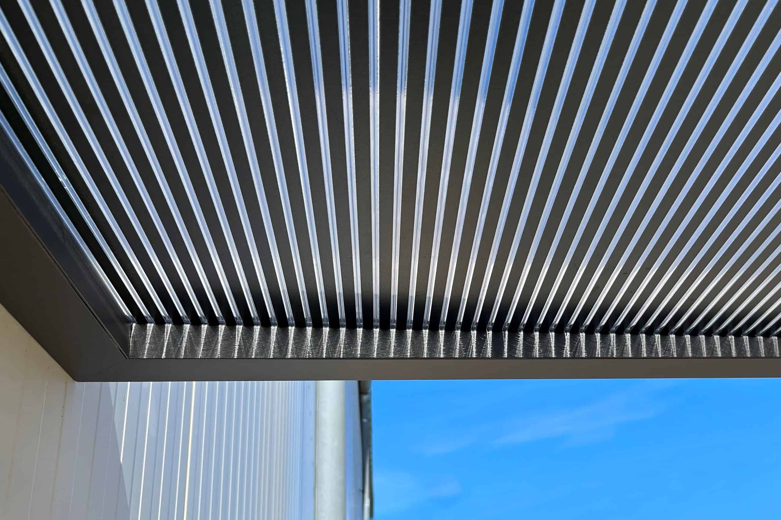 – Abdeckung mit 16 mm starker “Zebraplatte” (hagelsichere PC-Stegplatte mit dunklen Streifen)